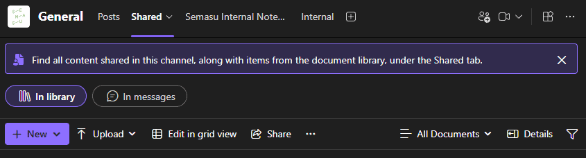 - In library: This is your familiar space with folders and documents from the channel’s SharePoint library, just like before.